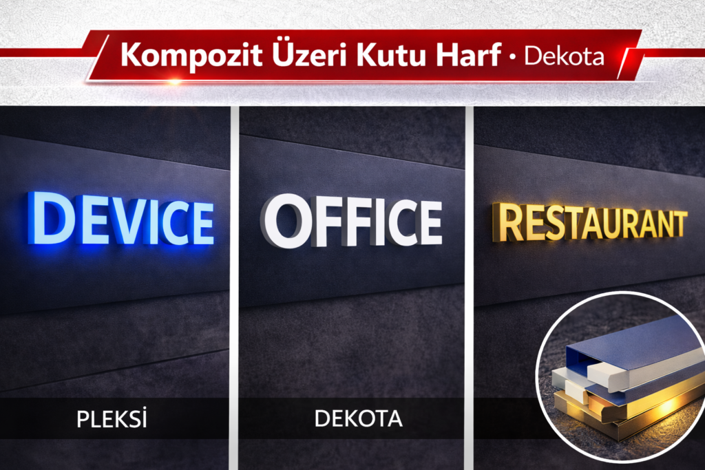 Kompozit üzeri kutu harf tabela, alüminyum kompozit panel kaplama üzerine monte edilen harf sistemlerinden oluşan modern ve kurumsal bir tabela modelidir. Özellikle mağaza, banka, hastane, okul ve zincir markalar tarafından tercih edilir. Hem estetik hem de uzun ömürlü bir çözümdür.